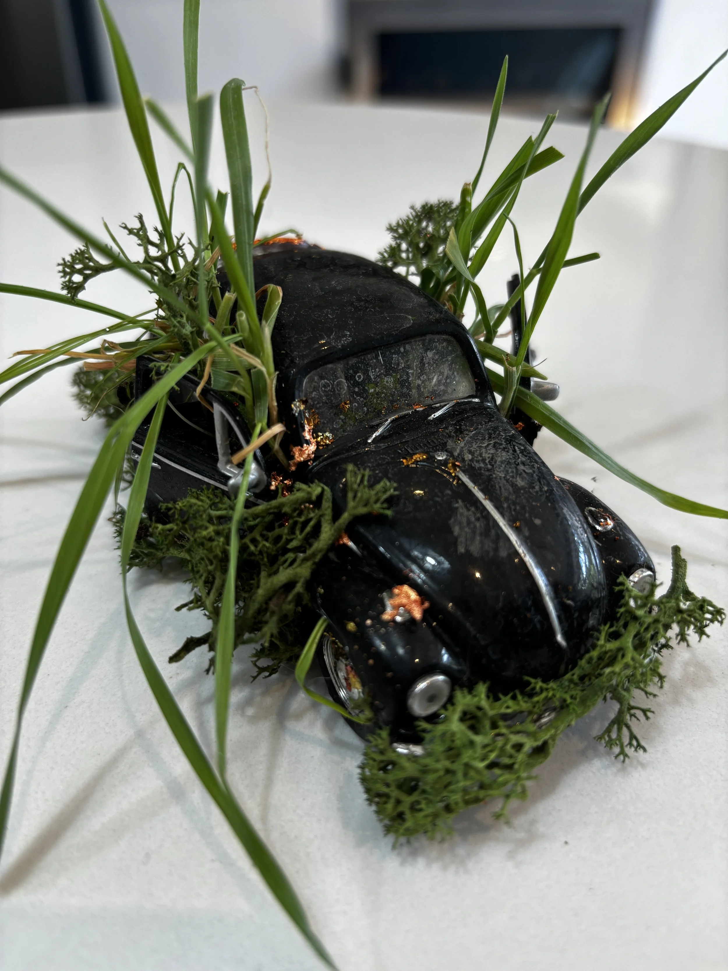 Qu’est-ce que c’est? (2024) evolved from desire to push my own personal characteristics beyond the familiar and challenge myself. I was intrigued by the power and struggle for survival over hard and/or man-made materials and those of biological organic matter. This installation was inspired by images from the Chernobyl nuclear power plant disaster some 40 years ago, and the recent discovery of a lost Amazonian city believed to have been hidden for more than 2500 years.